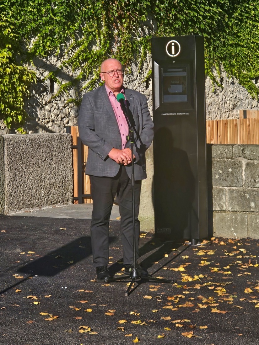 Slovesno otvoritev so s pesmijo začele učenke Osnovne šole Nazarje, ki so združene v i-zborček. Zbrane je nagovoril župan Občine Nazarje Matej Pečovnik, ki je povedal, kako je potekal projekt in kaj vse je obsegal. Občina je oktobra leta 2023 z Ministrstvom za gospodarstvo, turizem in šport podpisala pogodbo o dodelitvi sredstev za omenjeni projekt, ki je sofinanciran iz Načrta za okrevanje in odpornost. Na ploščadi pred gradom je, poleg novega asfalta, glavni poudarek na opremi – postavljene so nove klopi, informacijske table, polnilnica za e-kolesa, digitalni informator, na katerem lahko domačini in turisti pridobijo koristne informacije ter koši za smeti. Pri obstoječih panojih so dotrajane lesene stebre nadomestili s kovinskimi. Obnovljen je tudi dostop v muzej, prejšnja lesena klančina je zamenjana z betonsko in novo leseno ograjo. Župan je razložil tudi, da projekt še ni povsem zaključen in da se bodo dela nadaljevala pred frančiškanskim samostanom, kjer bodo postavili klop, digitalni informator, polnilnico za e-kolesa in koš za smeti.
