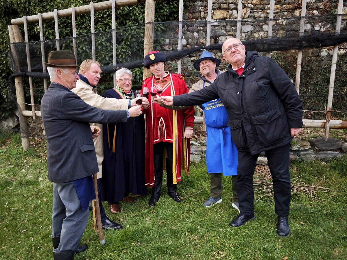 Na sončni legi ob skali v gradu Vrbovec je tudi letos potekala tradicionalna rez trte, ki v Nazarjah že vrsto let simbolno povezuje lokalno skupnost. Dogodek vsako pomlad združi krajane in obiskovalce, ki spremljajo eno ključnih opravil v vinogradništvu – spomladansko rez, od katere je v veliki meri odvisna rast in rodnost trte v prihajajoči sezoni.