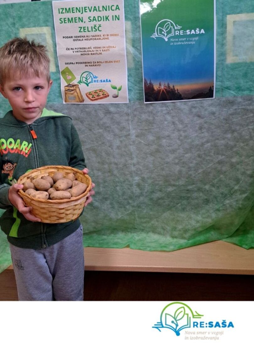 V našem vrtcu je zato postavljen zeleni kotiček. Otroci, starši, dedki, babice ter vzgojitelji vsakodnevno polnijo poličke z različnimi sadikami, semeni in zelišči. Oživela je izmenjevalnica, katere namen je, da lahko kdor ima doma odvečne sadike ali semena, te podari tistim, ki jih bodo koristno uporabili na svojih gredicah in balkonih. Otroci so sadike presajali tudi v vrtcu in se aktivno učili postopka zasaditve novih rastlin.