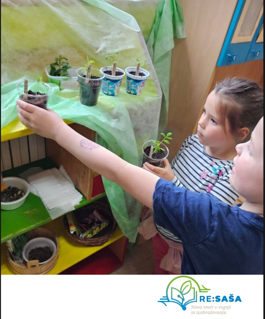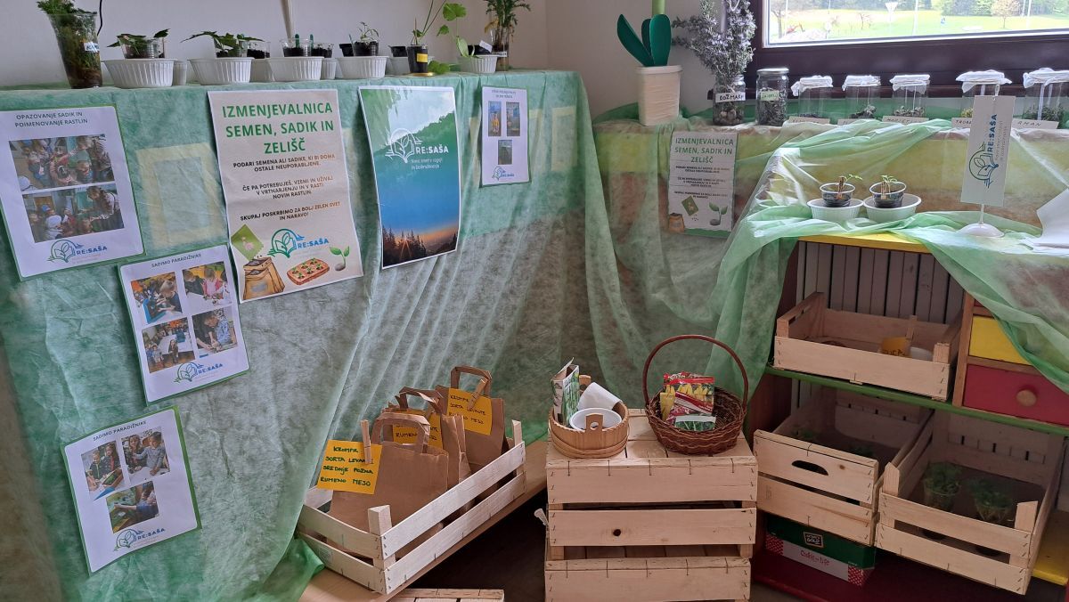 V našem vrtcu je zato postavljen zeleni kotiček. Otroci, starši, dedki, babice ter vzgojitelji vsakodnevno polnijo poličke z različnimi sadikami, semeni in zelišči. Oživela je izmenjevalnica, katere namen je, da lahko kdor ima doma odvečne sadike ali semena, te podari tistim, ki jih bodo koristno uporabili na svojih gredicah in balkonih. Otroci so sadike presajali tudi v vrtcu in se aktivno učili postopka zasaditve novih rastlin.